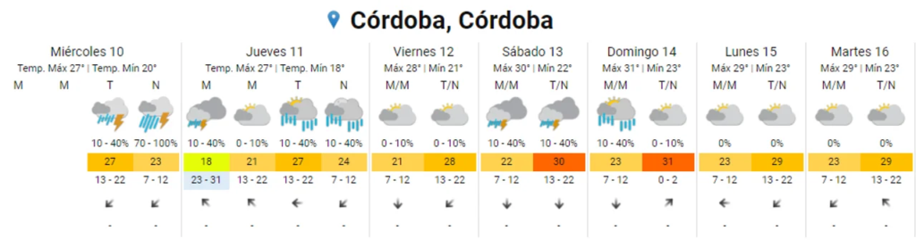 Incluso, para el jueves, una zona del oeste de la provincia de Córdoba seguirá afectado por estas tormentas.