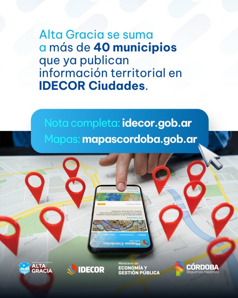 Con esta actualización, Alta Gracia se suma al grupo de 40 ciudades cordobesas que ya comparten sus datos territoriales en el geoportal Mapas Córdoba, promoviendo una gestión más moderna, clara y accesible.