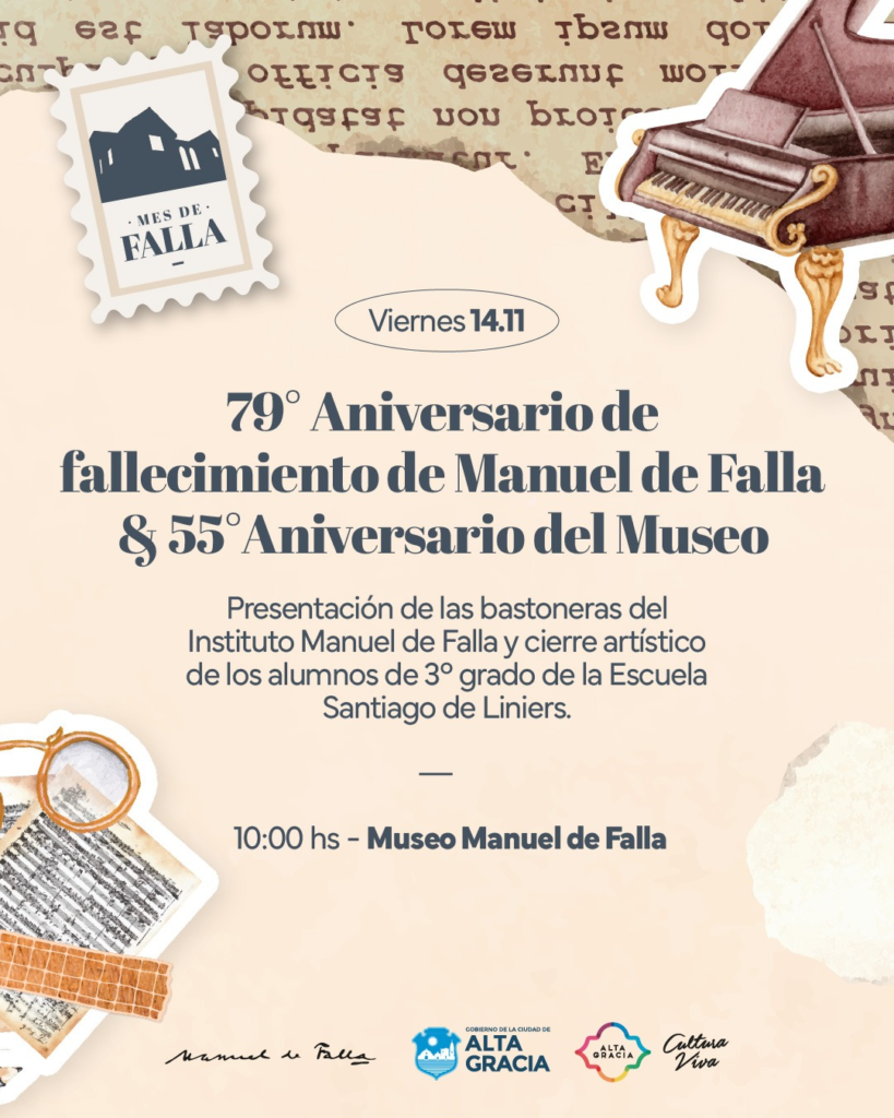 La actividad se enmarca dentro del Mes de Falla, un ciclo que cada noviembre celebra la vida y obra del músico que eligió a Alta Gracia como su lugar en el mundo, y que forma parte de la agenda cultural del Gobierno de la Ciudad de Alta Gracia.