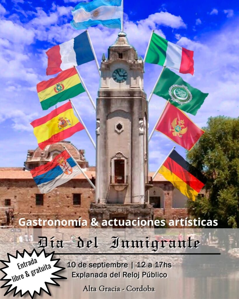 Este domingo 10 de septiembre, la ciudad de Alta Gracia prepara un festejo para celebrar el Día del Inmigrante. En este oportunidad, los festejos incluirán gastronomía y actuaciones artísticas.