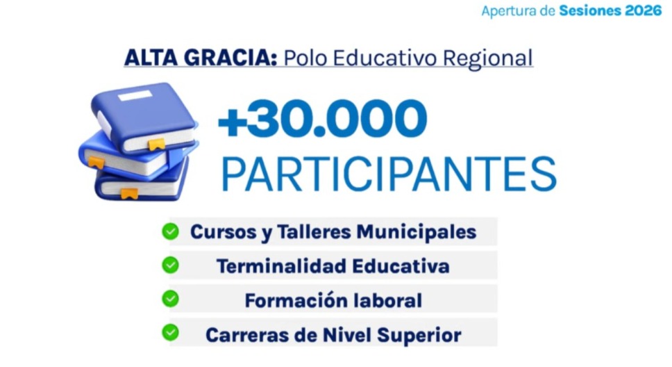 También se anunciaron cuatro nuevas diplomaturas junto a la Universidad Nacional de Córdoba y se destacó un dato inédito para la ciudad: los primeros egresados de la carrera de Enfermería formados íntegramente en Alta Gracia.