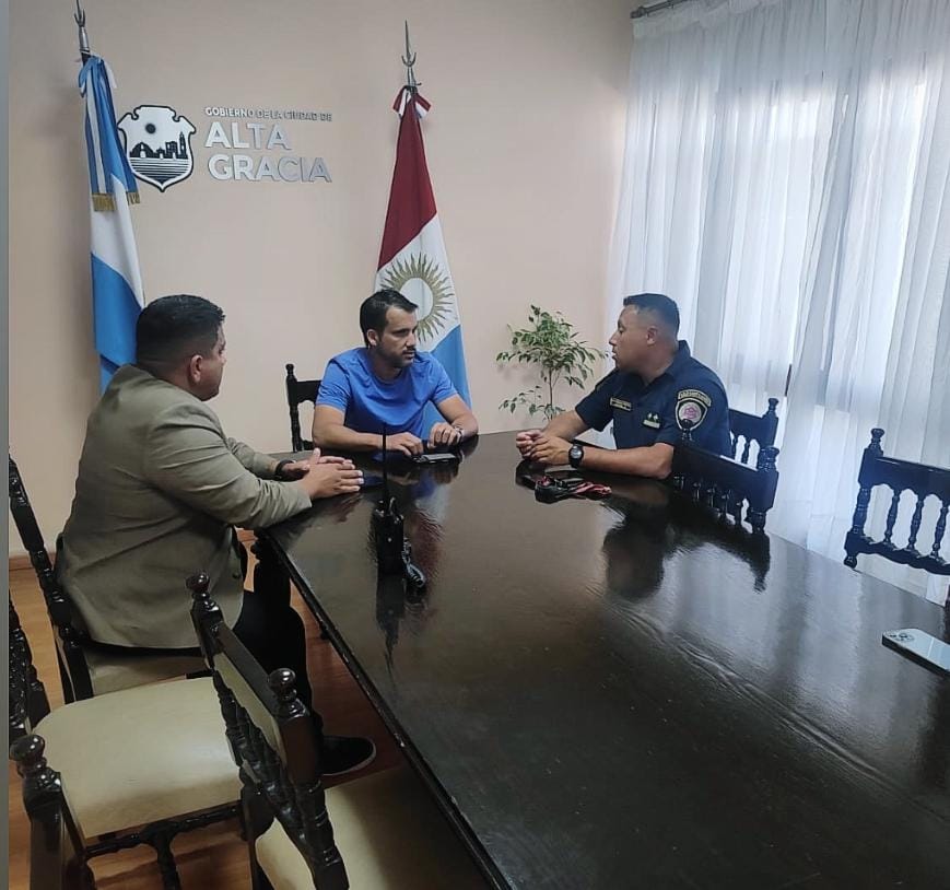 En una reunión clave para el presente y el futuro de la ciudad, el intendente de Alta Gracia, Dr. Marcos Torres, mantuvo un encuentro de trabajo con el Director de la Departamental Santa María, Crio. My. Lic. Héctor Villagra, y el titular de la Comisaría local, Crio. Duilio Franceschini, donde se abordaron temas centrales vinculados a la seguridad y a la planificación estratégica de la temporada turística 2025-2026.