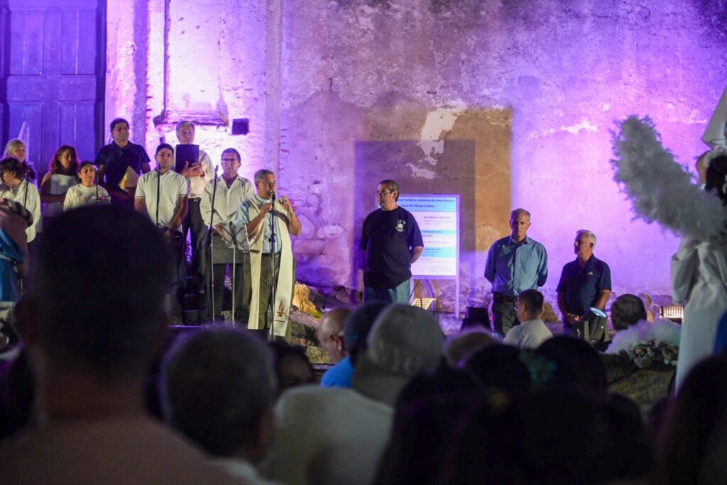 Cerca de las 23 horas, la Carroza llegó a la explanada del Museo de la Estancia Jesuítica, donde previamente el Coro Polifónico Municipal, dirigido por el profesor Mario Ramón, interpretó canciones navideñas junto al tenor Sebastián Espina, generando un clima de profunda emoción.