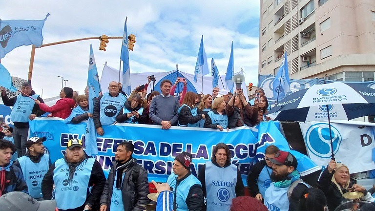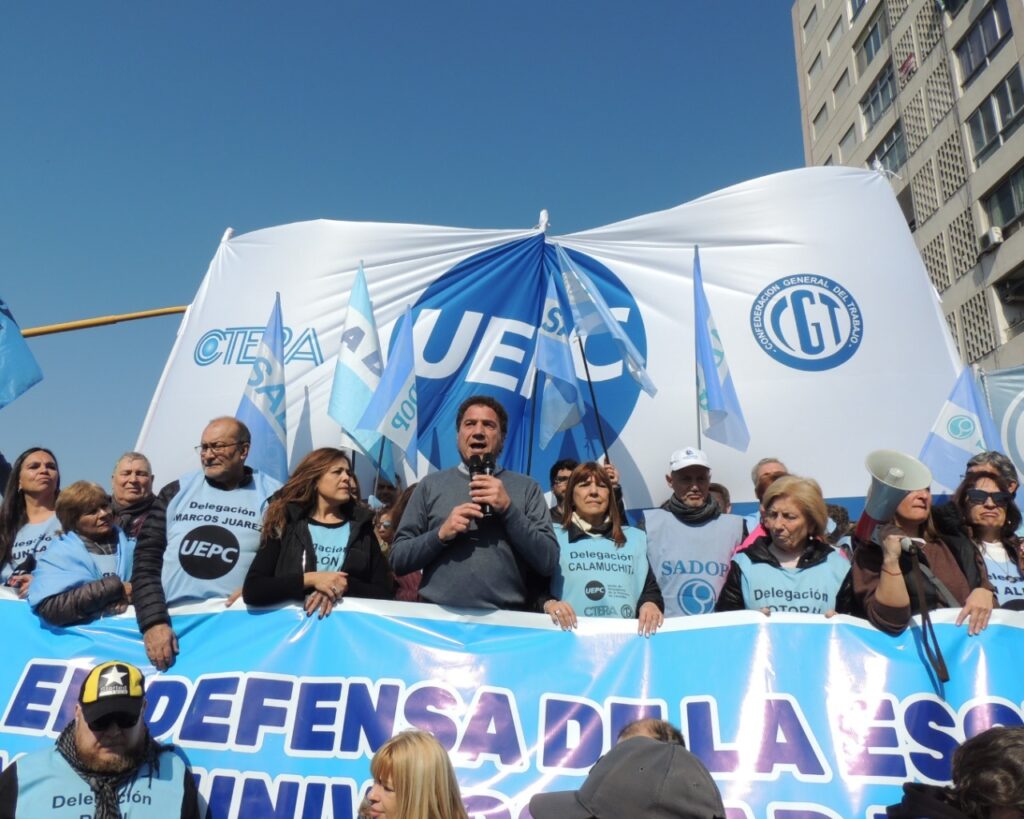La masiva movilización, a la que se sumó el SADOP y otros sindicatos, finalizó frente al Panal en donde llevaron adelante el acto central con la lectura de un documento de la CGT Córdoba en apoyo y solidaridad con la lucha de nuestra organización. “Exigimos a la Provincia el pertinente reconocimiento que se merecen las y los docentes mejorando sus condiciones salariales y laborales”, afirmó Federico Corteletti, miembro del triunvirato que conduce la CGT Córdoba.