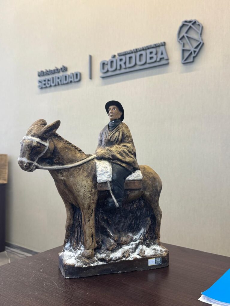 Este martes, en el Centro Cívico el ministro de Seguridad, Juan Pablo Quinteros, recibió de manos del reconocido escultor Julio Incardona una estatuilla de nuestro santo argentino, el Cura Brochero, montado sobre su histórica mula “Malacara”.