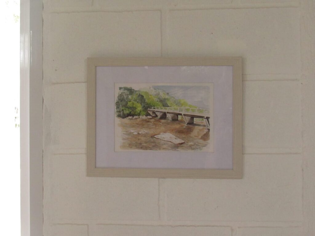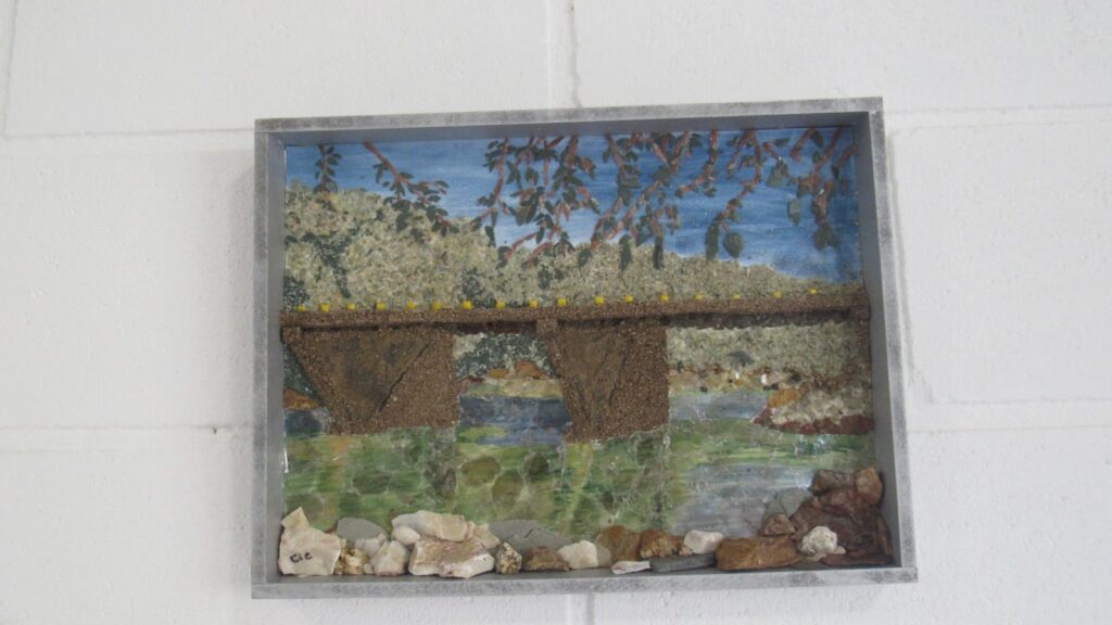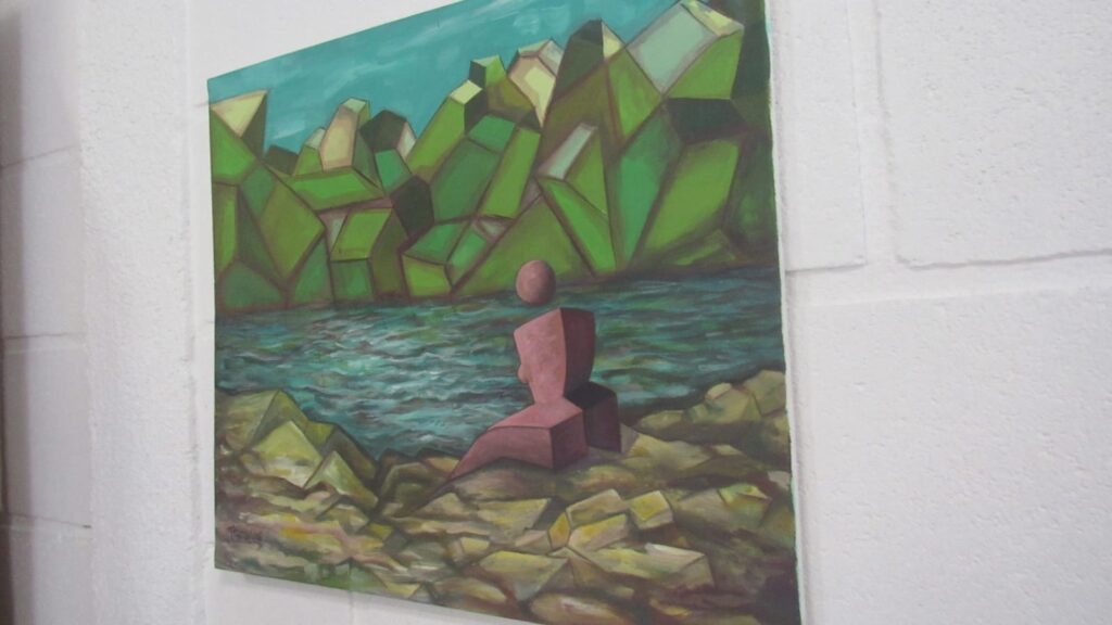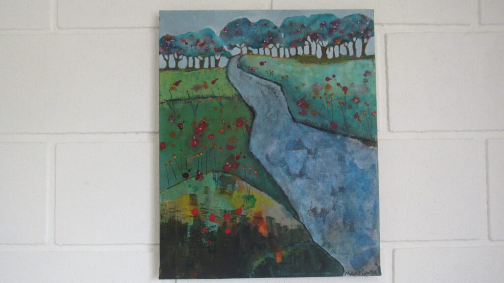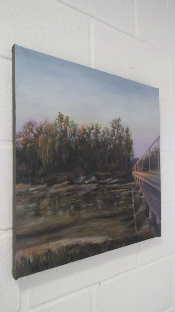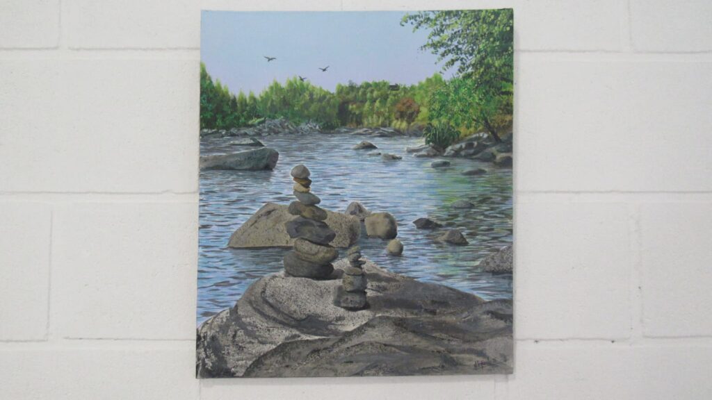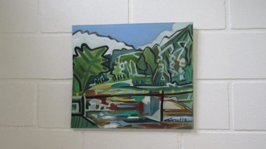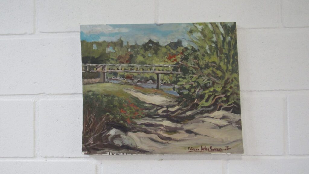 Las obras presentadas fueron realizadas hace algunos días en un encuentro artístico a orillas del río Anisacate, donde los artistas pintaron paisajes y escenas que reflejan la estación y la identidad natural de la Villa.
