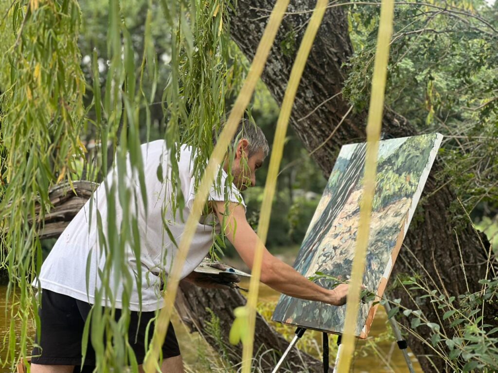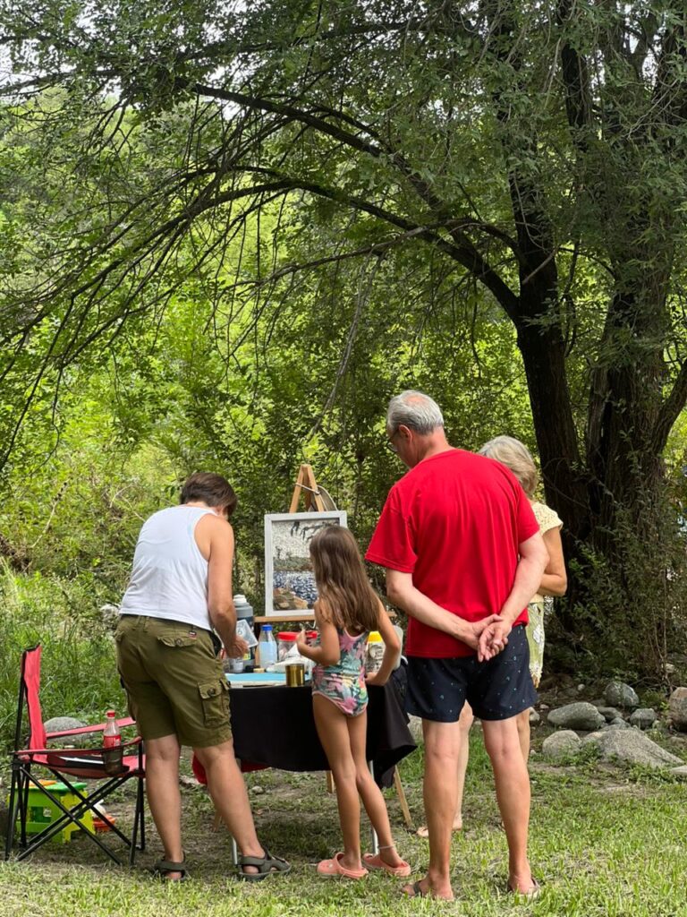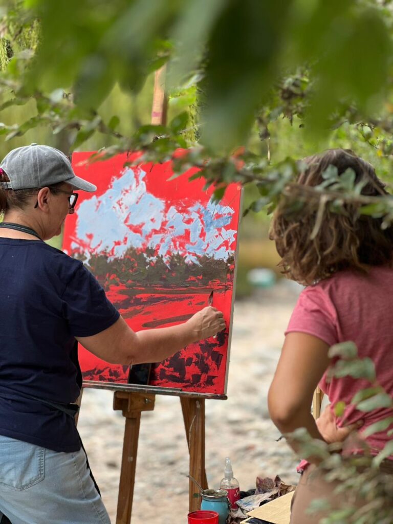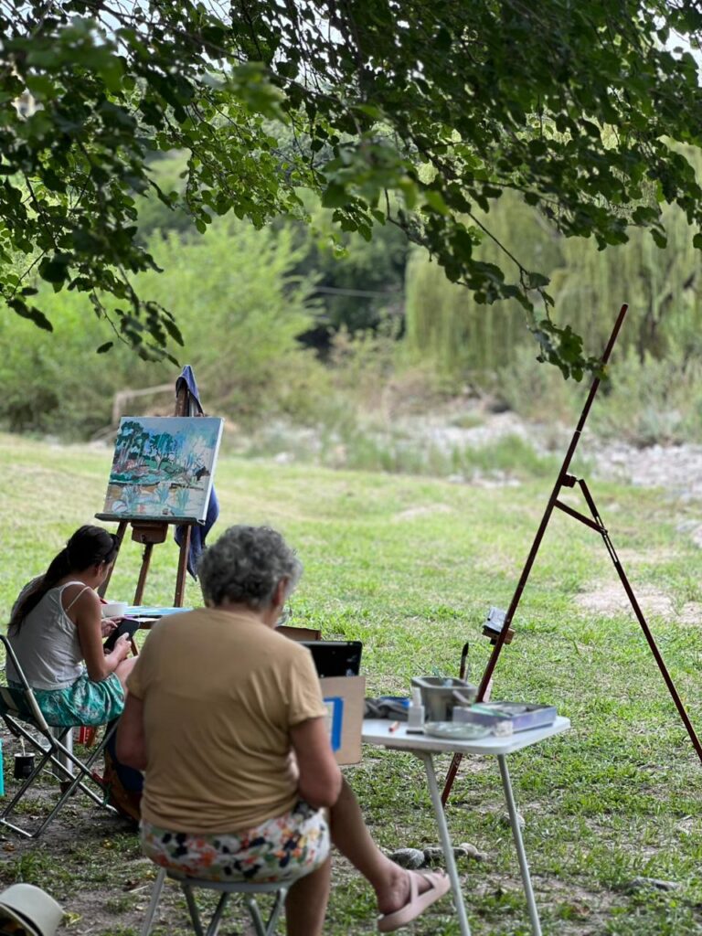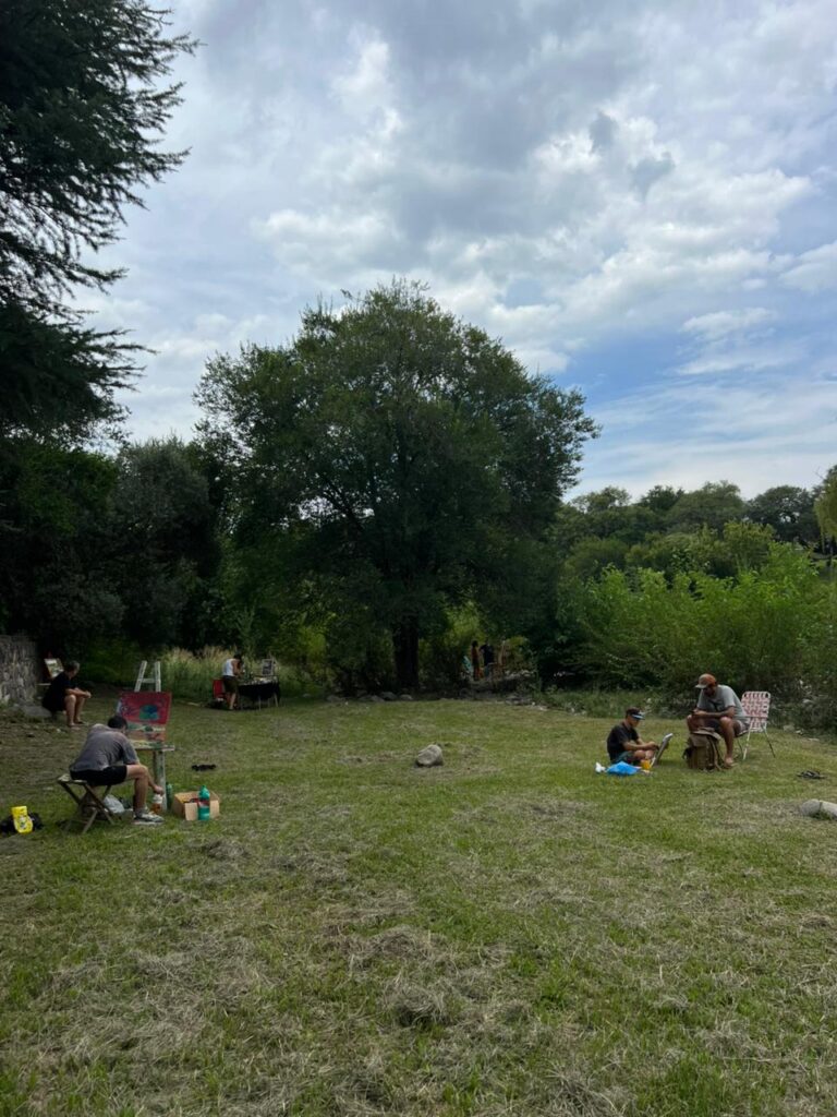 Desde las 11 horas, artistas visuales locales y de la región desarrollaron sus obras en vivo, inspirados en el paisaje natural, compartiendo su proceso creativo con vecinos, vecinas y visitantes que se acercaron a disfrutar de una mañana distinta, marcada por el diálogo, el mate compartido y la contemplación del entorno.