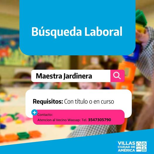 Desde la Comuna de Villas Ciudad de América convocan a cubrir vacante en el puesto de Maestra Jardinera para instituciones de esta localidad.