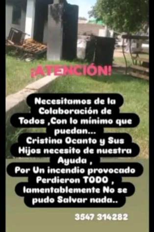 Con el objetivo de reconstruir su vivienda y poder volver a tener un lugar seguro donde vivir con sus hijos, la mujer inició una colecta solidaria. El alias difundido para quienes deseen colaborar es Dalia.859.mora, cuenta que —según aclaró— está a nombre de su hija mayor pero es administrada por ella. También pueden comunicarse al 3547314282.
