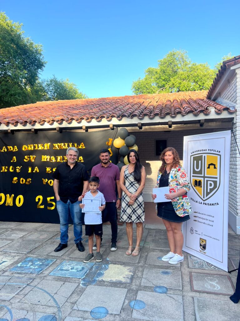 Este jueves Villa La Paisanita fue escenario de una tarde profundamente emotiva, donde la educación se convirtió en el eje central de un encuentro que reunió a la comunidad en torno al cierre del ciclo lectivo de la Escuela Primaria Domingo Faustino Sarmiento y a la entrega de certificados de los cursos y talleres de la Universidad Popular de La Paisanita y del Ministerio de Desarrollo Social y Promoción del Empleo de la provincia de Córdoba consolidando una experiencia educativa compartida y con fuerte identidad territorial.
