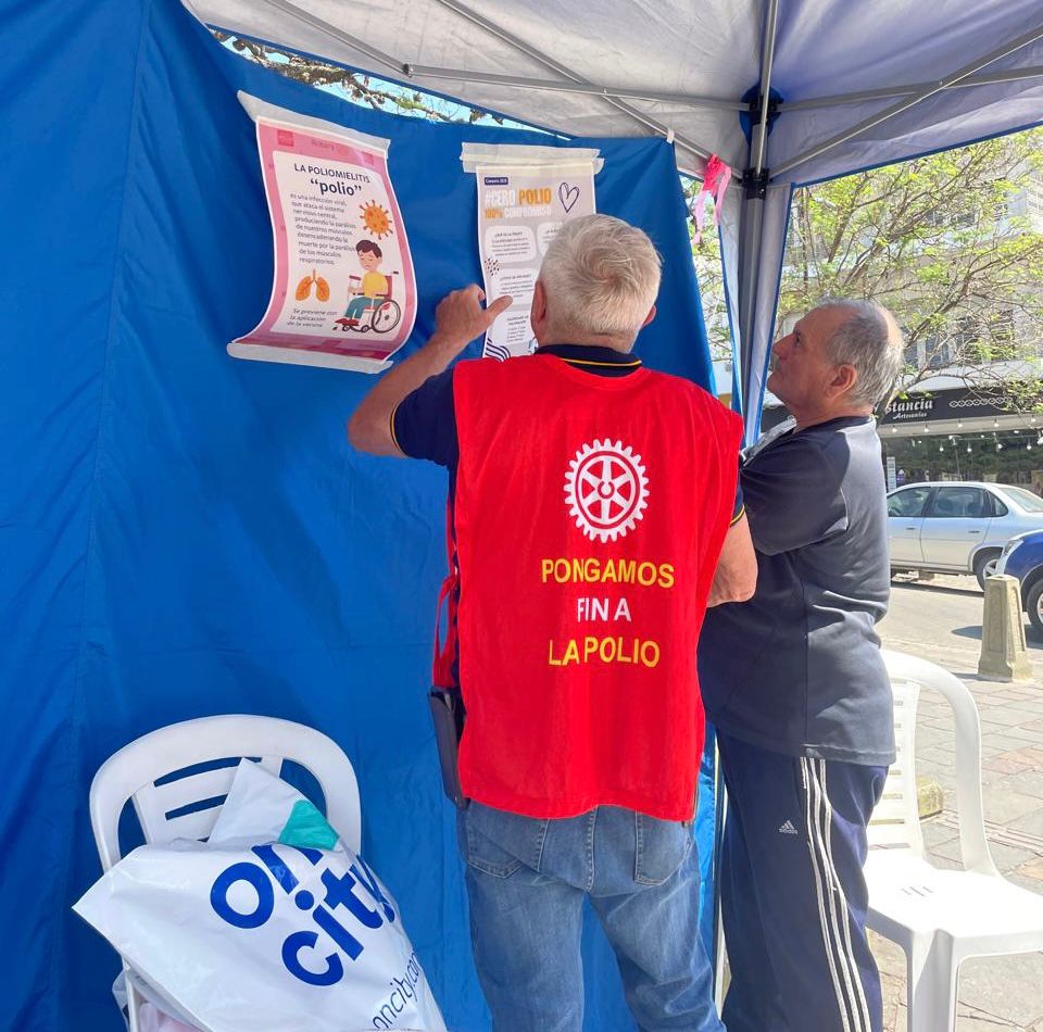 Gracias al aporte del Rotary International se está erradicando la poliomielitis en el mundo, únicamente en Pakistán y Afganistán aún hay focos activos de esa enfermedad. La carpa del Rotary estuvo instalada en la Plaza Solares.