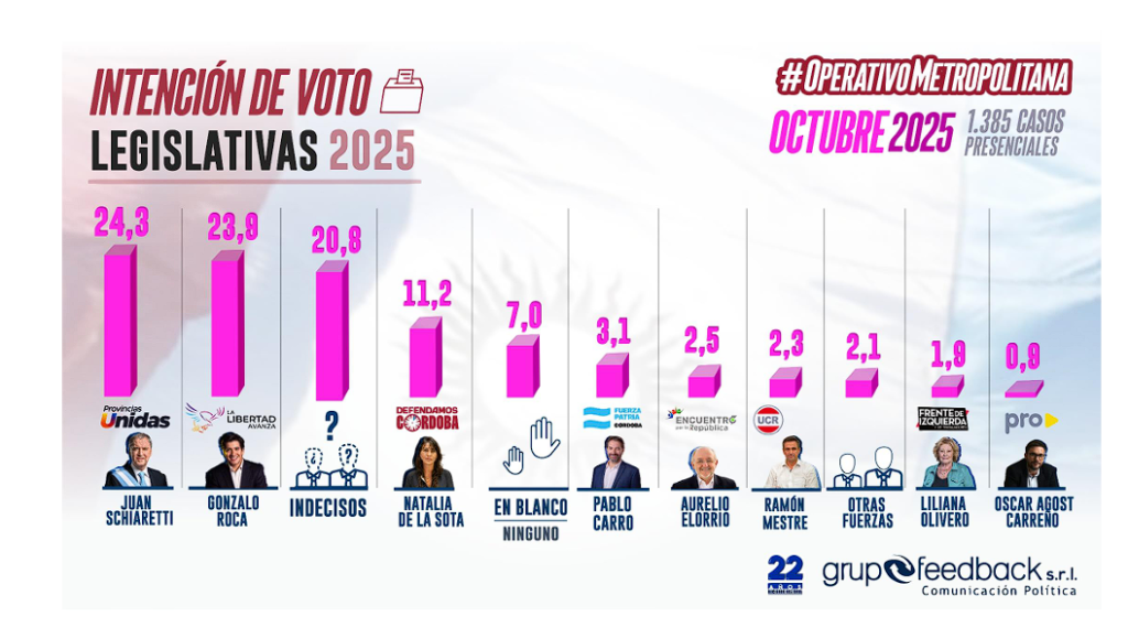 Según el análisis de Grupo Feedback, el escenario electoral cordobés muestra una alta fragmentación y volatilidad, con creciente incertidumbre económica y desconfianza hacia la dirigencia política.