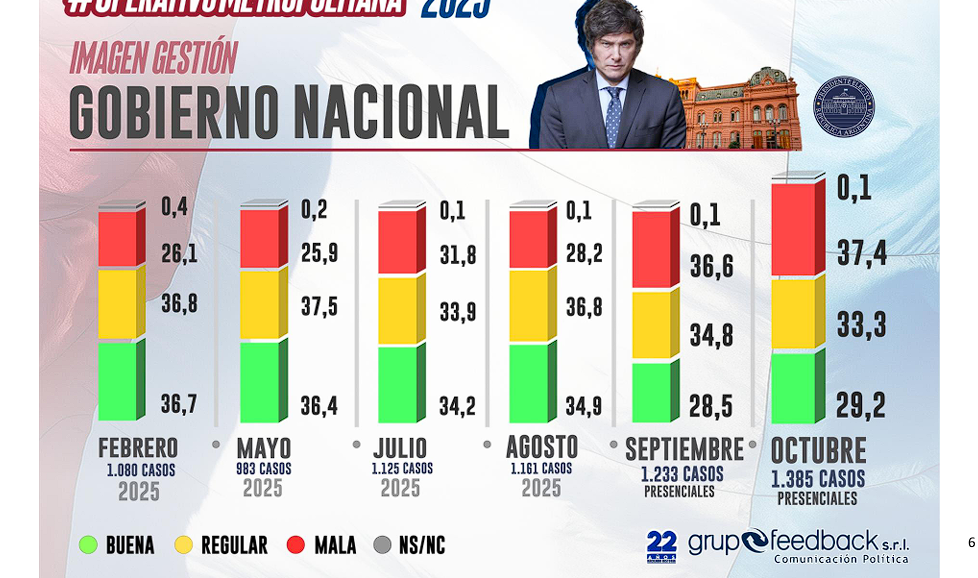 El último relevamiento de Grupo Feedback S.R.L., realizado los días 3, 6 y 7 de octubre, midió el humor social y las preferencias electorales de cara a las legislativas del 26 de octubre de 2025.