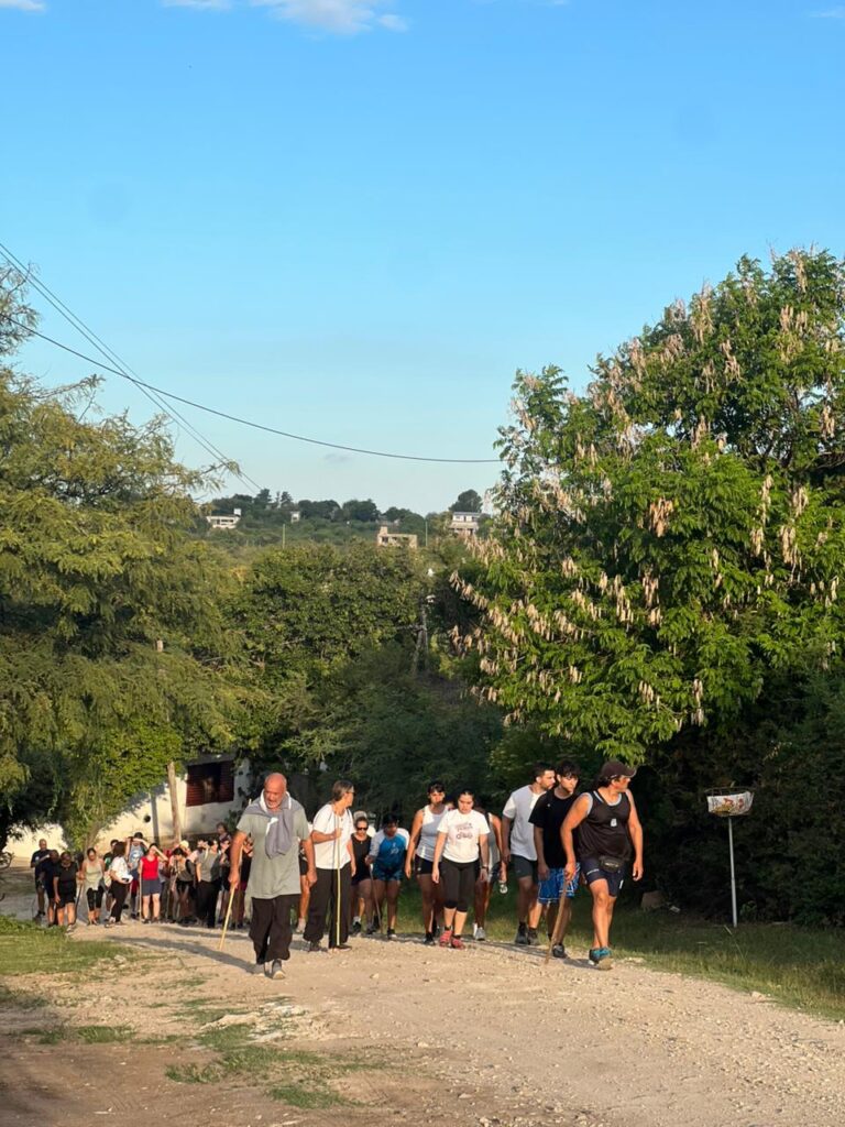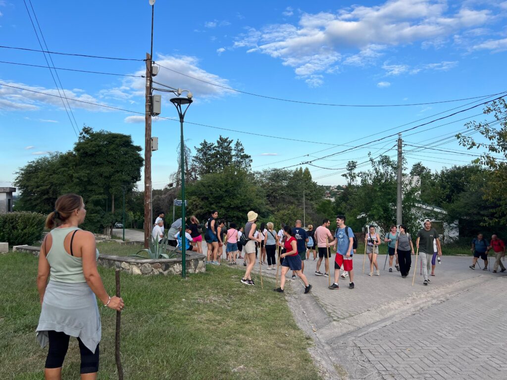 La actividad comenzó en la Oficina de Turismo desde donde vecinos y visitantes se dirigieron al margen del río para realizar un precalentamiento coordinado por Marisa Peralta. Luego, el recorrido avanzó hacia la Plaza Principal, la Plaza Nemesio Silva y distintos puntos emblemáticos del pueblo.