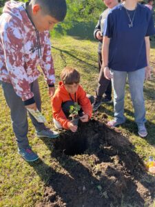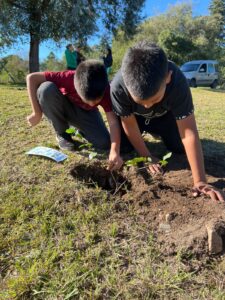 Durante la jornada, estudiantes, docentes y personal comunal participaron activamente del proceso de plantación, en un espacio que combinó aprendizaje, compromiso y conciencia ambiental.