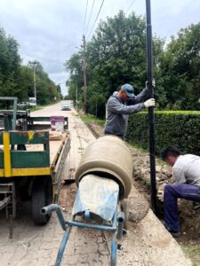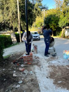 En esta etapa, se lleva adelante la instalación de 10 nuevas farolas con sus respectivas columnas de luminaria, lo que permitirá optimizar la visibilidad y jerarquizar uno de los principales accesos. Asimismo, se trabaja en la puesta en valor del puente de ingreso, integrando esta intervención a una mirada más amplia de ordenamiento del espacio.