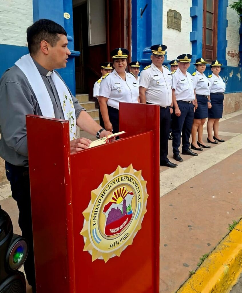 El párroco local, Gilberto González, brindó una bendición a todos los uniformados presentes, con una mención especial a los integrantes del Sistema de Emergencias 911, quienes presentaron sus nuevos uniformes durante la ceremonia.