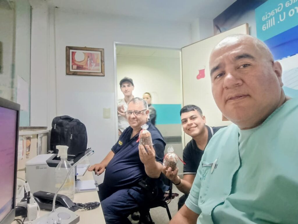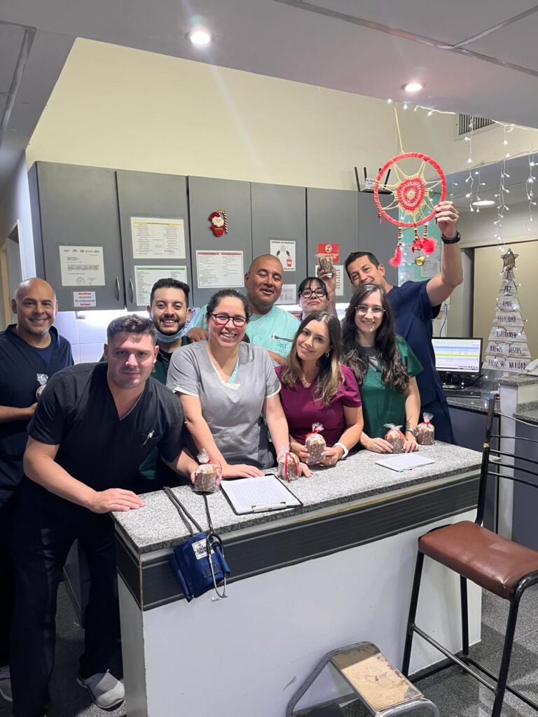 “Entregamos más de 40 mini pan dulces a la gente que iba llegando al hospital”, expresó Fabián Alfaro, quien destacó además el acompañamiento del personal de la institución. En la iniciativa participaron trabajadores y trabajadoras de pediatría, médicos, radiólogos, bioquímicas, personal de seguridad y efectivos de la policía, que se sumaron activamente a la propuesta solidaria.