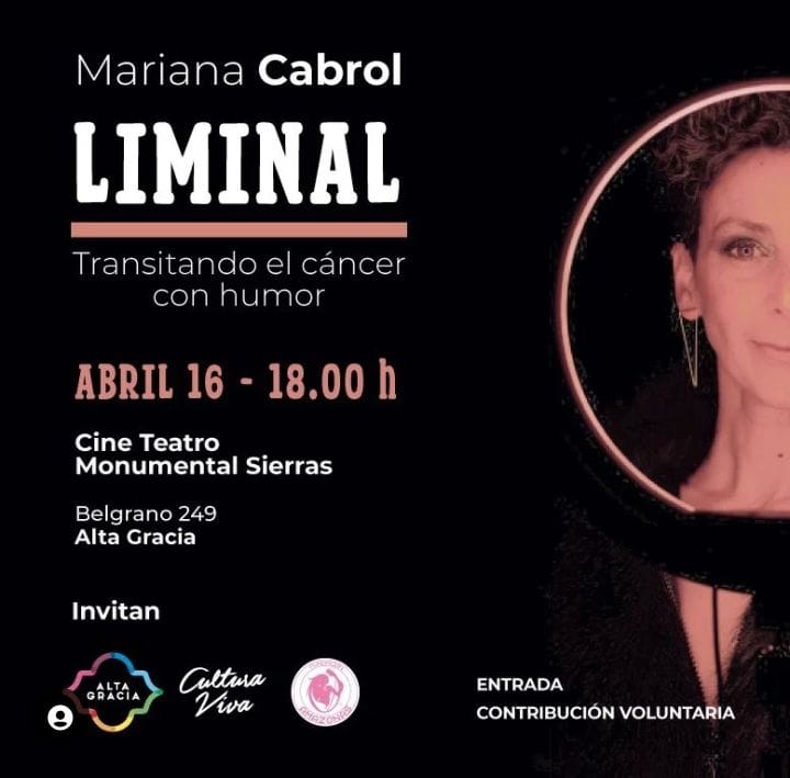 La Actriz y Comediante, Mariana Cabrol se presentará este próximo domingo 16 de abril a las 18 en el Cine Teatro Monumental Sierras (Belgrano 249) de la ciudad de Alta Gracia. El evento está dirigido a todo público, con entrada a la gorra.