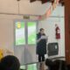 Uno de los momentos más significativos fue protagonizado por los más pequeños, quienes colocaron cintas celestes y blancas con mensajes alusivos en los vidrios del salón. La actividad, originalmente pensada para el Espacio Malvinas, debió adaptarse sin perder su esencia.