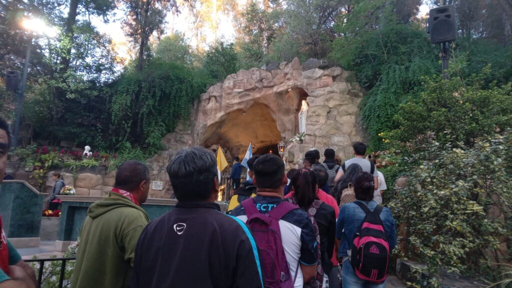 La gente llegaba hasta el ingreso de la Gruta y desde allí terminaba el circuito caminando, arrastrándose o de rodillas hasta la imagen de la Virgen.