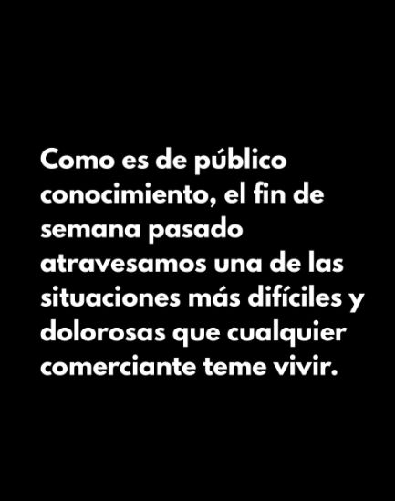 “Como es de público conocimiento, el fin de semana pasado atravesamos una de las situaciones más difíciles y dolorosas que cualquier comerciante teme vivir”, comienza el comunicado difundido por la familia.