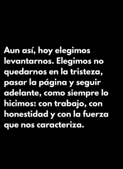 “Aun así, hoy elegimos levantarnos. Elegimos no quedarnos en la tristeza, pasar la página y seguir adelante, como siempre lo hicimos: con trabajo, con honestidad y con la fuerza que nos caracteriza”.