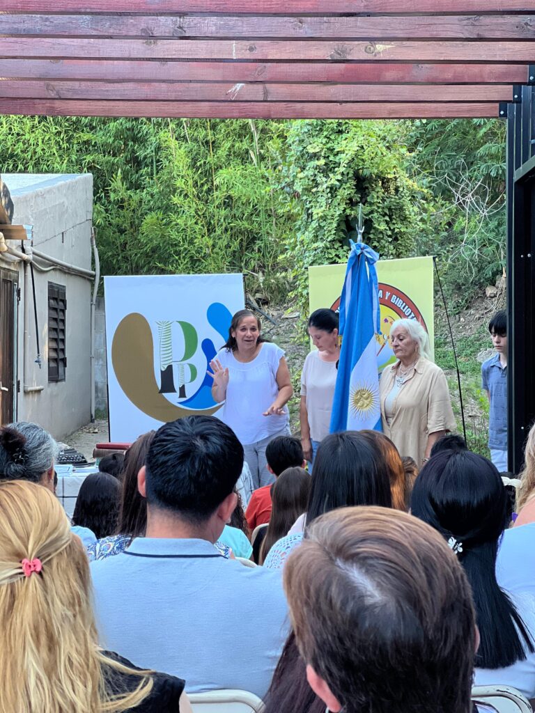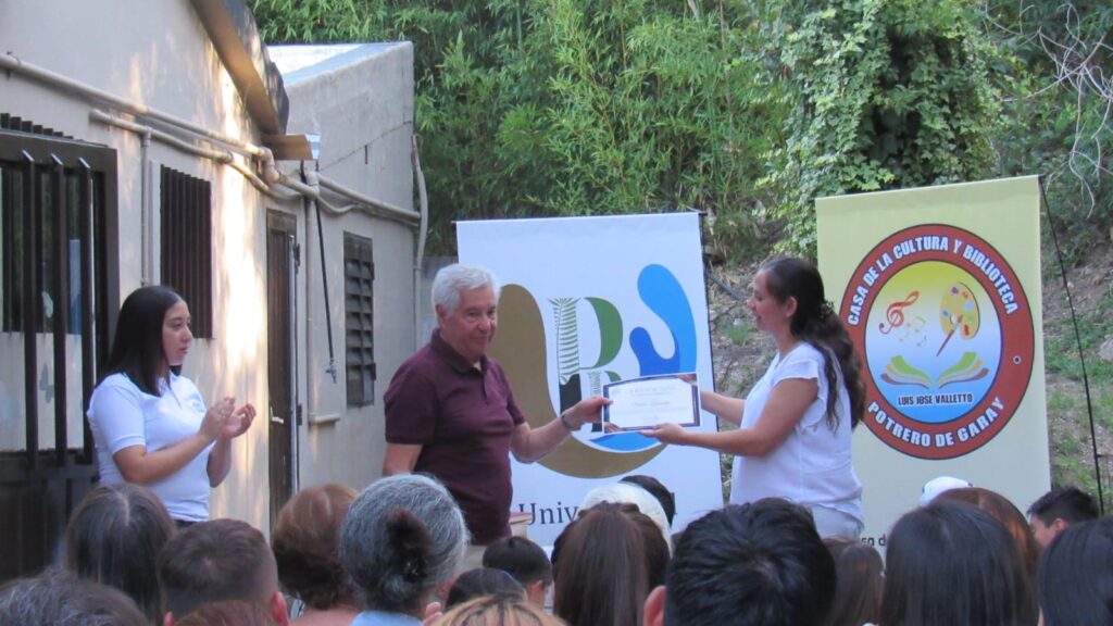 La coordinadora local, en tanto, transmitió también el mensaje del presidente comunal Gerardo Martínez, quien no pudo estar presente por razones de agenda, pero hizo llegar su agradecimiento y destacó la importancia de la presencia de Spinetti y de su aporte a la vida cultural y educativa de Potrero de Garay.