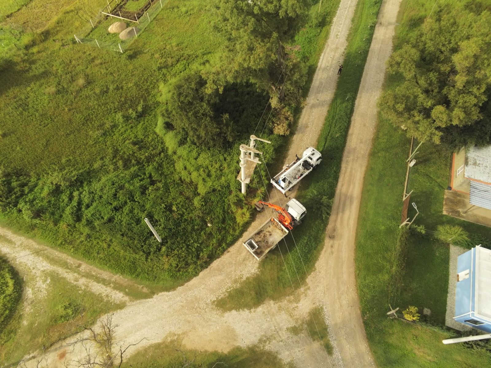 En paralelo al recambio del cableado, la cooperativa también viene avanzando en la sustitución de postes, especialmente en media tensión, donde los elementos de madera se van reemplazando progresivamente por postes de cemento, más durables y resistentes.