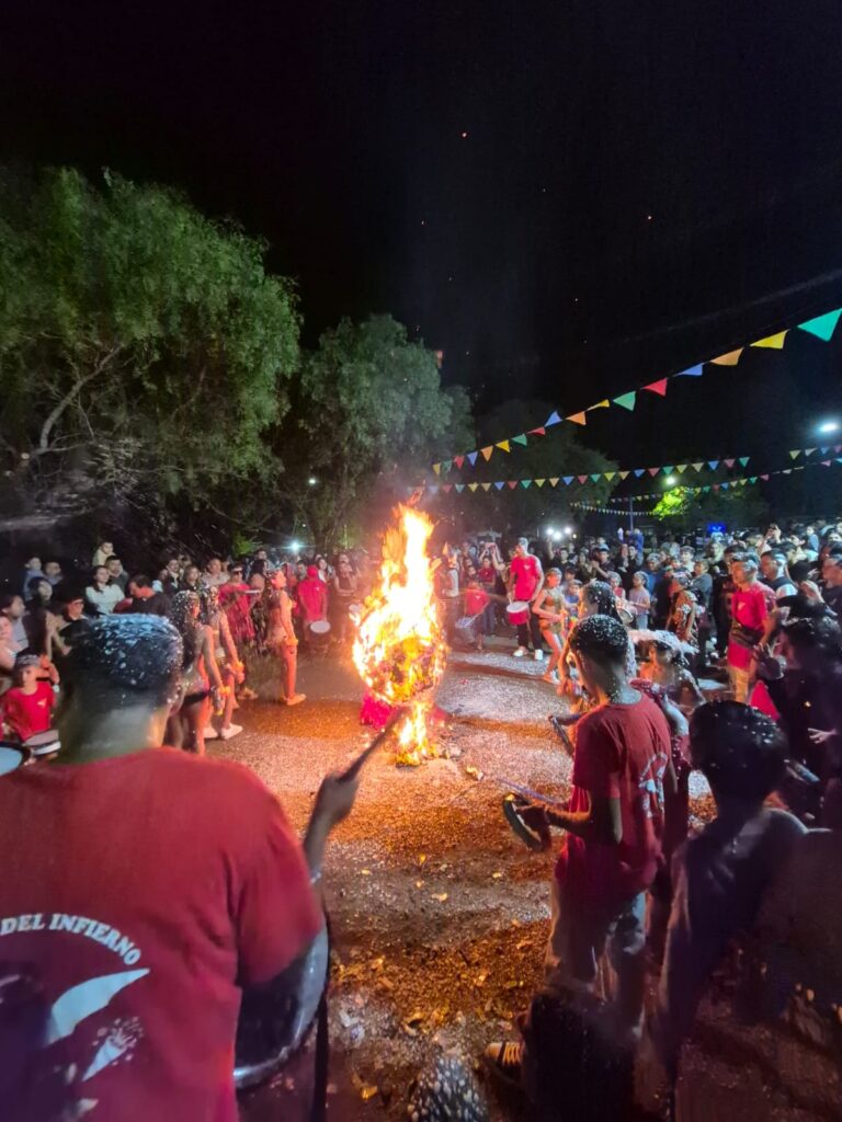 La celebración comenzó cerca de las 22 horas con el desfile de comparsas y murgas provenientes de distintas localidades, entre ellas Kalem de Toledo, Batucada Sao Cayetano de Río Segundo, Murga Los Aromitos de Villa del Prado y la Comparsa Y Ella de Jesús María, que llenaron las calles de ritmo, baile y vestuarios vibrantes.