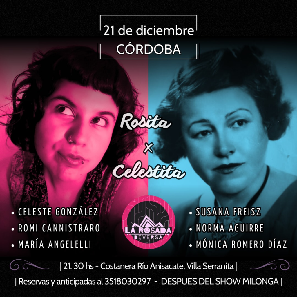 El ciclo de homenaje a la primer cantante arrabalera del tango, Rosita Quiroga, ideado por Celeste González, se dará el próximo sábado 21 de diciembre a las 21.30 hs en el espacio cultural “La Rosada Diversa” ubicado en La Serranita, Av de Los Incas s/n (frente al balneario). El show se dará el marco de la milonga “La Pulenta”.