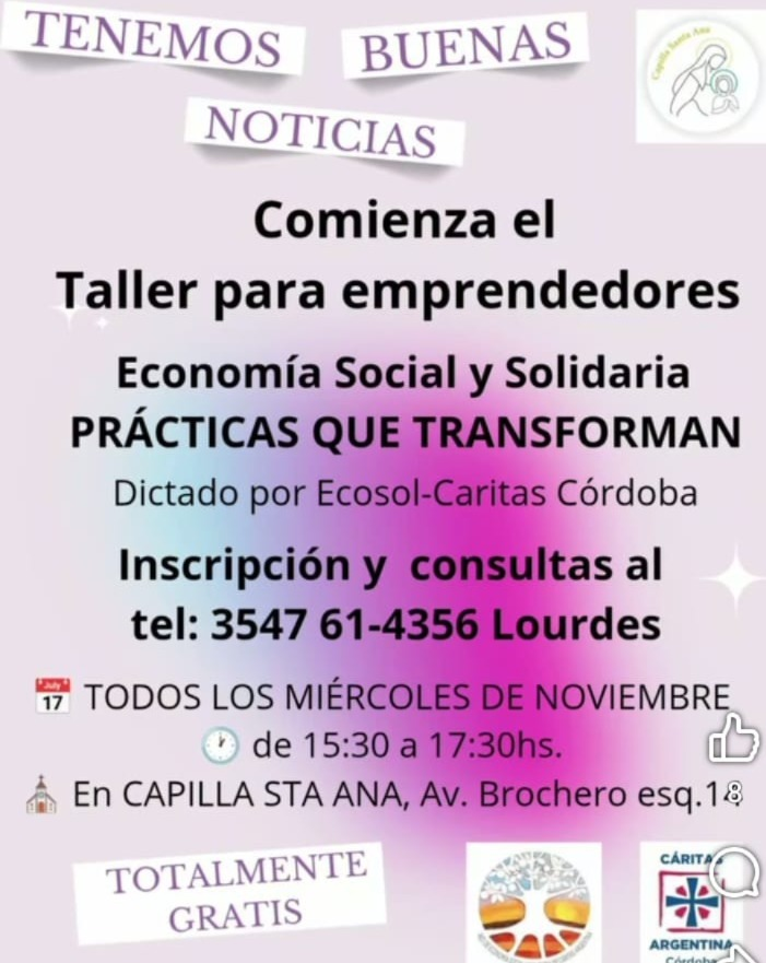 Desde el área de Economía Social y Solidaria de Cáritas Córdoba, en conjunto con la Capilla Santa Ana, invitan a participar del taller “Prácticas que transforman”, un espacio de aprendizaje y sensibilización para reflexionar sobre cómo organizar la economía de manera más humana, participativa y solidaria.
