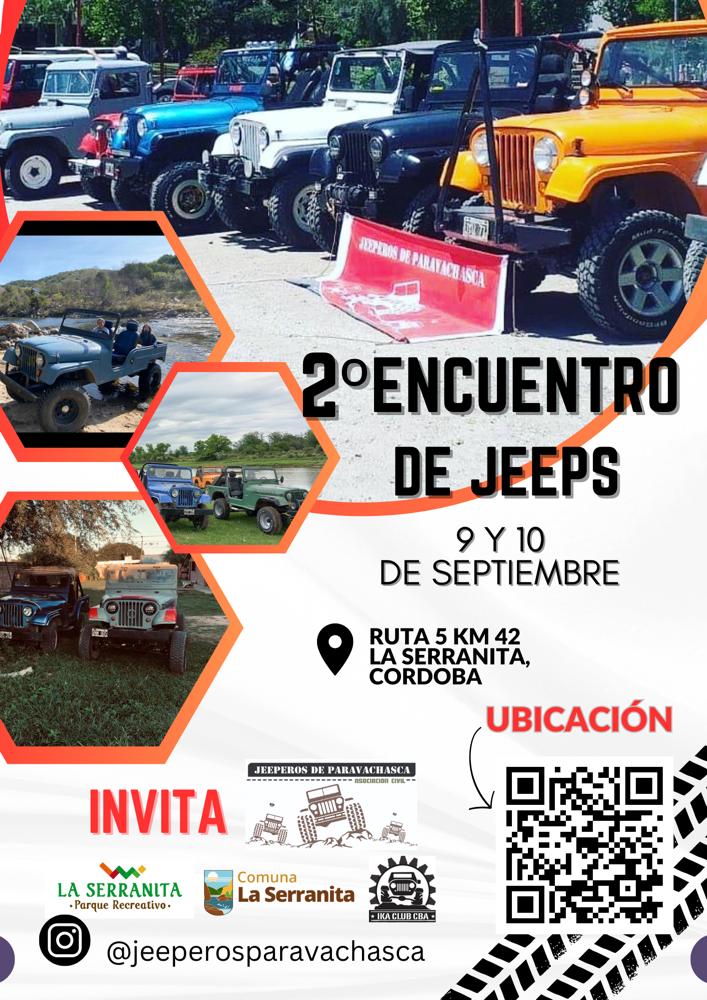 El 9 y 10 de septiembre, en La Serranita se estará desarrollando el “2° Encuentro de Jeeps” donde participarán ejemplares de toda la región y de todo el país, con jeeps tradicionales y modificados.
