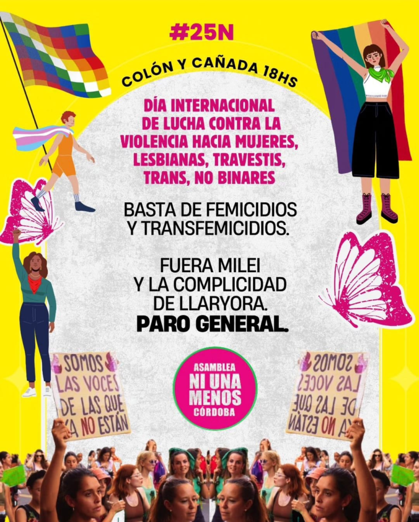 La convocatoria para marchar partirá este lunes desde la icónica intersección de Colón y Cañada las 18hs. bajo la consigna “Basta de femicidios y transfemicidios. Fuera Milei y la complicidad de LLaryora. Paro General”, expresaron.