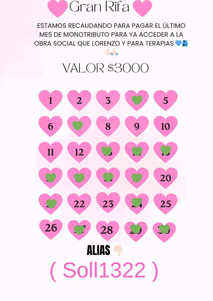 La rifa tiene un valor de $3000 y cuenta con 30 números. Para participar, los interesados pueden colaborar mediante alias: Soll1322.