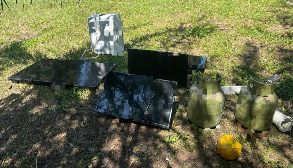Luego, en inmediaciones, secuestraron de entre la maleza electrodomésticos y dos garrafas; y pudieron comprobar que para ingresar, dañaron la cerradura de una de las puertas