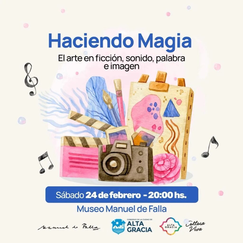 El ciclo que llena de música y arte las instalaciones del museo Manuel de Falla presenta “Haciendo Magia – El arte en ficción”, sonido, palabra e imágen. Un encuentro de artistas que mueven emociones desde la música, poniendo el amor en palabras, la ficción en mujeres y el color en el lienzo. Con las artistas Laura Ninci, Irene Gonnet, Verónica Basso, Cecilia Reynoso y Estela Vázquez. 20hs, Museo Manuel de Falla.