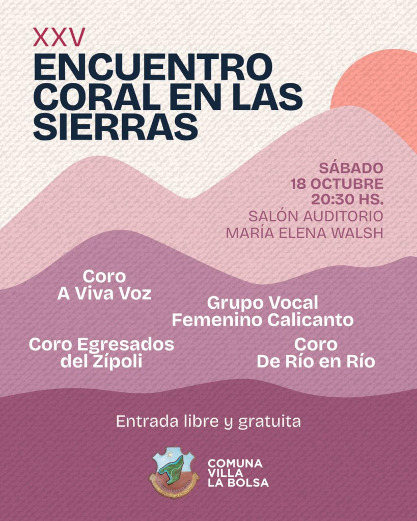 Organizado por la Comuna de Villa La Bolsa, el Encuentro Coral en las Sierras se consolida como un espacio de referencia en el calendario cultural regional, celebrando el arte del canto colectivo y el valor de la música como lenguaje común que une generaciones y comunidades.