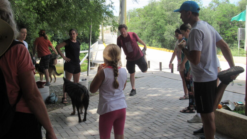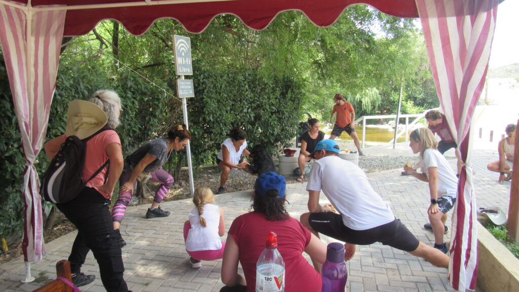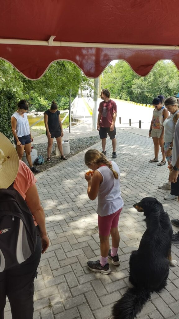 Vecinos, vecinas y personal del CAPS se reunieron por la mañana en el puesto sanitario instalado junto a la Oficina de Turismo, desde donde inició el recorrido. La caminata incluyó distintos puntos de la localidad: calles internas, senderos y tramos de la costa del río, combinando ejercicio físico, pausas activas y momentos de descanso.